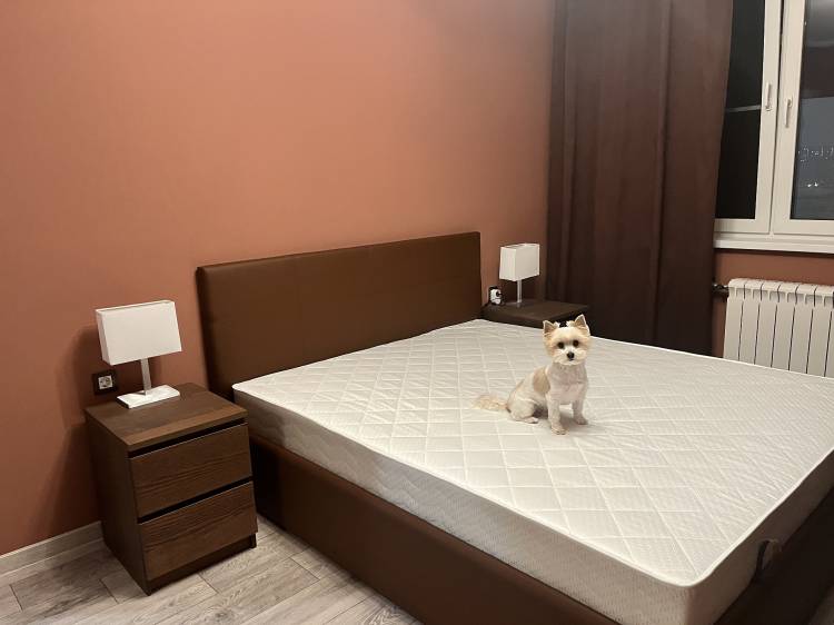 Заказали кровать в коричневом цвете, а тумбы коричневый/бежевый. Получилось очень красиво! Вместительный ящик для белья, механизм не скрипит. Мы всем довольны!