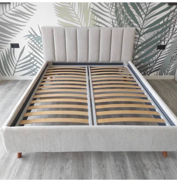 Прекрасная кровать. Нам очень нравится! По цвету и фактуре обивки могу сказать что дизайн стильный и лаконичный и что главное вне времени. Высота ножек как раз позволяет там убирать пыль роботу пылесосу.