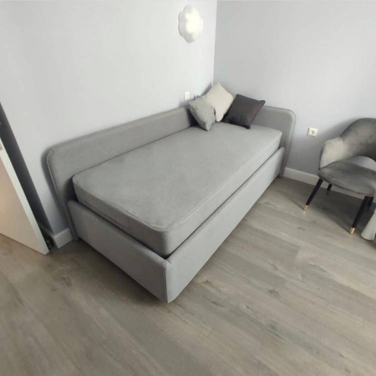 • Кровать-софа с обивкой из экокожи или мебельной ткани