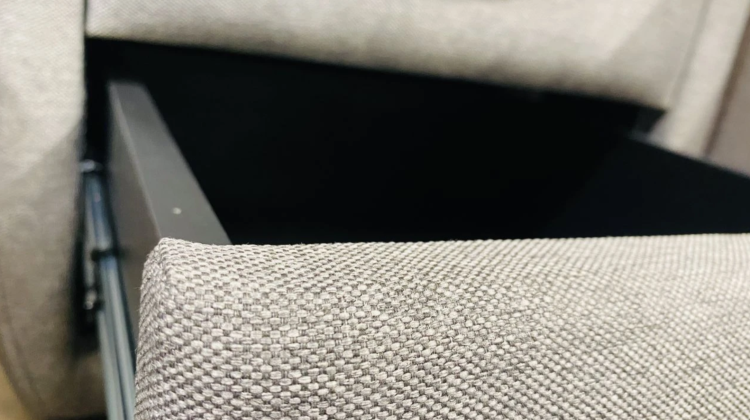 - Модель выполнена из ЛДСП, обитого экокожей класса «люкс» или мебельной ткани